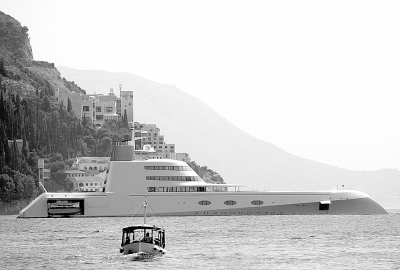 而当今世界上最大的游艇———长达165米的“日蚀号”上,更是配备了导弹防御系统和深海逃生潜艇。据说,这是“日蚀号”的主人———原俄罗斯首富、英国切尔西足球俱乐部老板阿布拉莫维奇,乘坐游艇从欧洲到南非看世界杯,为防止海盗而特意装备的。此外,该游艇上还有两个直升机升降台,数个桑拿浴室,一个私人影院和游泳池,三艘汽艇。对于大亨们来说,在甲板上可以展望蔚蓝的大海,在游艇内可以享受极致的生活。