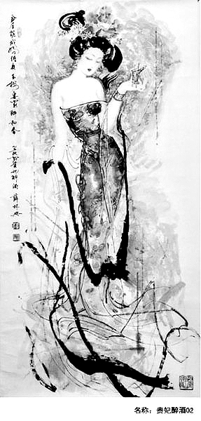 多年来,薛林兴创作了上百个古典美人形象,他笔下的杨贵妃,以其“回眸一笑百媚生”的特有魅力,在中国画坛上独树一帜。他画的《离骚》中的山鬼,《红楼梦》中的十二钗,传说中的白娘子、嫦娥等,或低眉细吟,或纤体微侧,或敛容凝眸,常常令人击节叫绝。