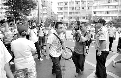 ▲9月4日,四川省高级人民法院,“孙伟铭醉酒驾车案”受害人家属金宇航(前中)准备进入法院。