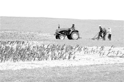 牧民在自家的草场上开荒种地。乌力吉木仁苏木满都呼嘎查牧民特木日巴根等牧民告诉记者,全嘎查180多户牧民没在自家草场上开垦种地的已寥寥无几。记者在嘎查内走一圈发现,家家户户用网围栏围封起来的草场上开垦出来的耕地很多。
