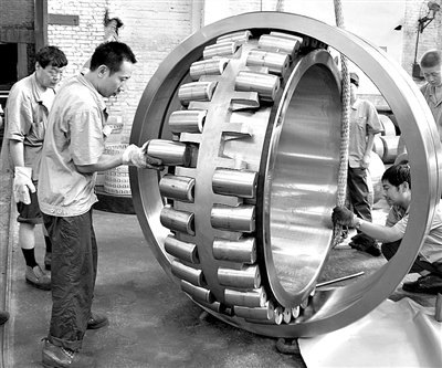 左图:具有自主知识产权的亚洲最大、最重的球面滚子轴承。