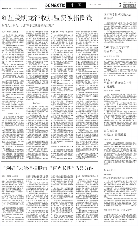 红星美凯龙征收加盟费被指圈钱