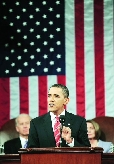 在国会议员礼节性的阵阵掌声中,美国总统奥巴马27日完成了他上任以来的第一次国情咨文。在这次夜晚9时黄金时间的演讲中,奥巴马侃侃而谈,纵论一年成就,承诺改善民生,宣誓改革决心,以此拯救自己不断下滑的民意支持度,并为自己随后三年的执政之路设定新基调。