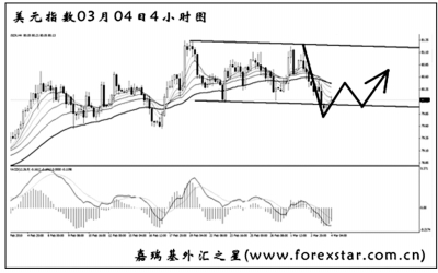 美元指数在高位形成了一个震荡区间,目前正在考验区间下沿的支撑作用,若跌破,美元有望形成阶段性的顶部,后市下跌的空间将被打开。图中MA C D出现了持续的顶背离信号,多头动能减弱,上升趋势线也被跌破,预计后市将以下调走势为主。
