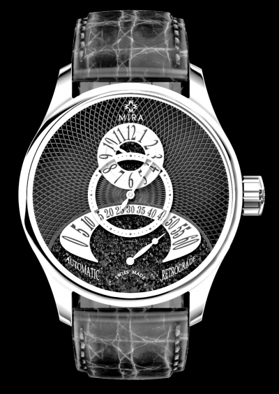 太 空 奇遇 4 2 mm直径的表壳为全不锈钢材质,表盘 为 多 层 次 设计,上半部为精心雕刻的金属网状guilloché雕纹,如璀璨的星光以Mira为中心向四周绽放;下半部有不同款式可以选择,一款为蓝色金沙石表盘,另一款为特选白色贝母表盘。这是瑞士品牌M ira全新力作———“太空奇遇”系列。 |