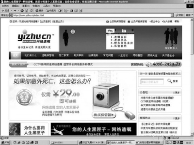 网站介绍说,美国的“遗物守护者”、“有点害怕”、“死亡开关”、“离别的愿望”,瑞典的“网络遗嘱”(M yWebw ill)等网站是该网站的创意来源。但经了解,这些网站所处理的财产并非我们日常所说的遗产,而是网络信息和来源于网络的电子数据,如游戏账号、邮箱、网聊工具、博客等。这些“虚拟财产”在网络上的形成需要当事人的时间和精力,记载了当事人的个人资料和生活经历,如电子邮件或聊天记录,有的还具有交换价值可以出售给网友获益,如装备丰富、级数较高的游戏账号和网络游戏中形成的各种道具装备。这些电子数据的处理不仅关系当事人的亲友的情感寄托,也有处分、交换、变现的经济需要,因此网站作为这些电子数据、“虚拟财产”形成的平台和载体,当仁不让会成为最适合的载体,网站也因此会脱颖而出。