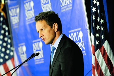 8月2日,在美国纽约大学斯特恩商学院,美国财政部长盖特纳发表演讲。