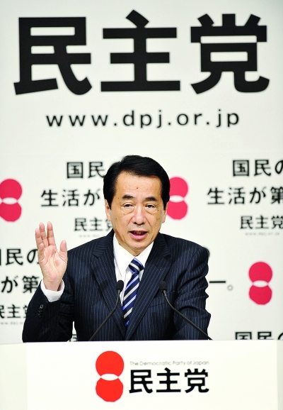 9月14日,日本首相菅直人在民主党代表(党首)选举中击败民主党前干事长小泽一郎,连任民主党代表。这也意味着将连任首相。 新华社/法新