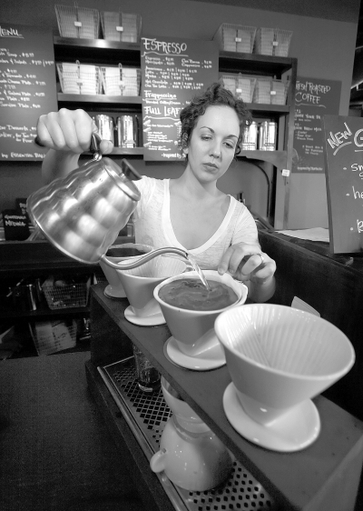 “慢咖啡馆”里,不管是白天还是夜晚,都不会有耀眼的灯光。人们或在自然光下,或在烛光中,小酌轻谈,耳边回荡着柔美的钢琴声。