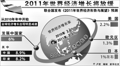 联合国经济与社会事务部在其《2011年世界经济形势与展望》报告也说,从2010年年中开始,全球经济增长出现明显减速,2011年的增长很可能将更加缓慢。