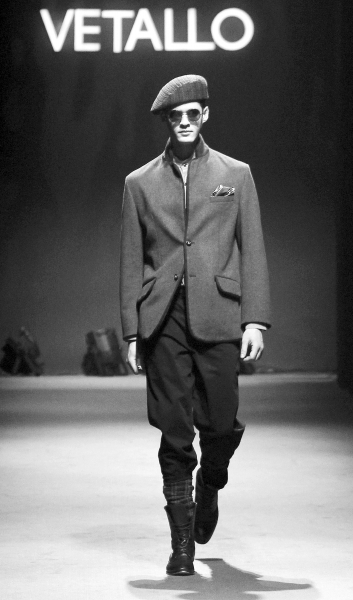 没有华丽的舞台装饰,没有花哨的灯光设计,高级男装绅士而儒雅的风范在平淡与低调中悄然进行。威德罗品牌2011/2012秋冬系列男装作品发布共展示了60余套经典而时尚的男装,设计师以黑白灰为基调,搭配暗红、艳蓝、墨绿三种高饱和度彩色,描绘了一系列都市新贵的时尚面孔。在本季威德罗男装发布中,十几款立领、翻领的便装体现了设计师对于便装的看重。整场发布会中,无论便装、休闲西装又或棉服,均应用了针织面料,这一近两年在国际舞台上重要的流行元素。不仅如此,秀场上围巾、手袋等配饰的运用也令人印象深刻。