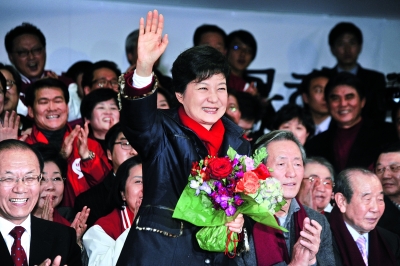 据韩国联合通讯社19日报道,韩国第18届总统选举开票完成70%,新国家党总统候选人朴槿惠以51.6%的得票率确认赢得选举,成为韩国历史上首位女总统。 朴槿惠当选后的经济政策广受关注,她曾表示韩国虽然有三星电子和现代汽车等许多世界级大公司,但韩国社会的不公平程度却在持续扩大,所以她主张经济民主化,承诺更多社会福利,但尚未给出细节。为增加就业机会,她还主张以科学技术和IT技术为基础的创造经济论。外交方面,她明确表示将进一步发展韩美同盟关系,并在此基础上与中俄等周边强国保持友好关系。 图为朴槿惠在韩国首尔新国家党党部向支持者招手示意感谢。 新华社发 |