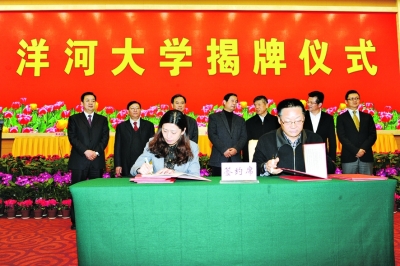 12月26日上午,洋河大学揭牌仪式在南京隆重举行,江苏省有关领导出席仪式,并与江苏洋河酒厂股份有限公司(苏酒集团)董事长、总裁张雨柏共同为洋河大学揭牌。江苏省企业大学创建工程领导小组办公室主任吴强和苏酒集团副总裁林青签署战略合作协议。南京大学商学院名誉院长、教授、博士生导师、江苏省企业大学创建专家委员会主任赵曙明,江苏省相关单位领导、省内各市经信委等相关单位领导和企业大学创建专家委员会专家、已建企业大学代表等参加了揭牌仪式。江苏省经信委党组成员、江苏省中小企业局副局长、江苏省乡镇企业局副局长张乐夫主持揭牌仪式。