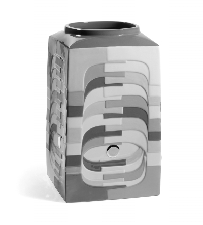 瓷之炫彩 西班牙瓷器品牌雅致的炫彩系列由花瓶、装饰盒、台灯组成,它们的基本图案源于地壳的岩石层。大量的立方体与曲线的组合,与地壳的岩石层横切面如出一辙,中心则运用了金属绘饰进行装饰,好似封印。每件作品都有两个版本,蓝绿相间和粉紫交错。 |
