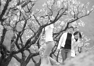 背着摄影包的摄影家们,钻进桃花阵里寻觅各自钟意的美色。离群索居的恋人们,选择一丛低矮而茂密的桃枝作为他们的憩息地,用深绿浅蓝的阳伞为自己支撑起一道“旁人勿扰”的屏障。爱呼朋引类的孩子们,或者在桃花林里占据一片开阔的带作为野餐的据点,或者扯起风筝,在较宽的田埂间比赛起放风筝。他们的风筝落下来,有时候就落在桃树上,打下了一大片的花,看桃的人也不生气,只是笑盈盈地看着他们,笑盈盈地帮他们取下被枝丫缠绕住线的风筝,再笑盈盈地指点他们去更宽阔的适合放风筝的地块。