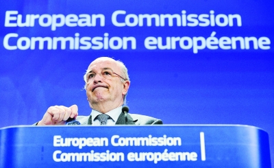 欧盟4日对8家金融机构开出创纪录的17亿欧元罚单,因为这些金融机构操纵了欧洲银行间欧元同业拆借利率和日元东京银行间同业拆借利率。其中,德意志银行因涉嫌操纵这两种利率被开出最大罚单,为7.25亿欧元。图为欧盟负责竞争事务的委员华金·阿尔穆尼亚在4日的发布会上发言。