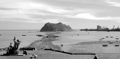 从岸边到笔架山岛有一条长1620米的砂石路,人称“天桥”,把海岸和山岛连在一起,这条路最奇妙的地方在于只有落潮时才会露出水面,人们可以通过,涨潮时,路面沉入水底,堪称“天下一绝”。