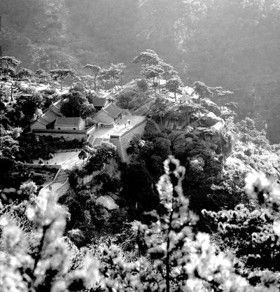 笔架山上悬崖峭壁奇秀,自然风光迷人,自下而上建有山门、真人观、吕祖亭、太阳殿、雷公祠、电母祠、五母宫、方丈院、三清阁等众多道教庙宇及点缀品,其中以主峰之上的三清阁最为精美,阁共六层,通高26.2米,为花岩石仿木结构建筑,八角攒尖顶,飞檐翘角,独具风格,内奉汉白玉石雕道教造像三十七尊,各高二米左右,雕工精美,神态各异;登临阁顶,举目四眺,海天一色,风景绝佳。
