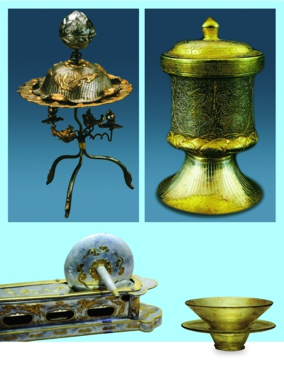 鎏金壶门座茶碾子