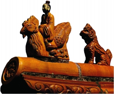 “仙人”没有名字,“凤”也是朴素的,但它带领着身后名声赫赫的龙、凤、狮、马等占据着所有华丽宫舍的每一条蜿蜒垂脊,构成了中华古建最具标志性的天际线。在老百姓那里,它还有个更亲切的名字,叫“仙人骑鸡”。是的,它就是在华夏恢宏的建筑上,亘古不移地端坐在屋脊最前端的那尊塑像。