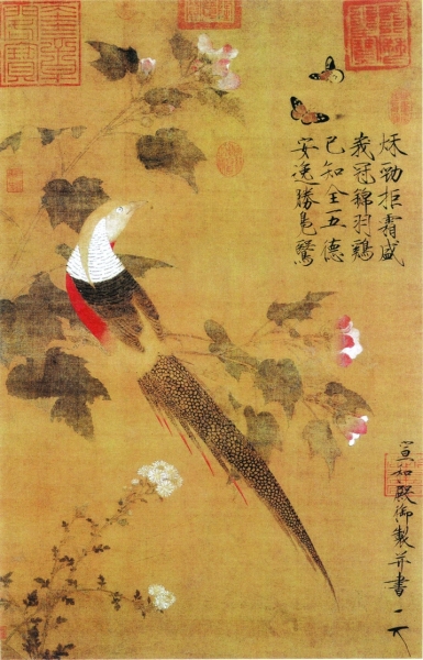 倘若说西方静物画是借助构图来诉诸表达,那么中国花鸟画就侧重由内涵而入,中国绘画中一贯讲究“气韵生动”,这一审美标准延伸到花鸟画的领域中,则是不满足于模拟客观事物的外在形似,而追求表达心境的介质。宋人在《宣和画谱》中论及花鸟画的主旨说:“所以绘事之妙,多寓兴于此,与诗人相表里焉。故花之于牡丹、芍药,禽之于鸾、凤、孔、翠,必使之富贵;而松、竹、梅、菊,鸥、鹭、雁、鹜,必见之幽闲。至于鹤之轩昂,鹰隼之击博,杨柳梧桐之扶疏风流,乔松、古柏之岁寒磊落,展张于图绘,有以兴起人之意者,率能夺造化而移精神遐想,若登临览物之有得也。”可以得见,中国花鸟画在呈现艺术家水墨技艺的同时,“荷花雅正、牡丹富贵、竹子谦恭、仙鹤长寿”才是其主体意识暗合的精神寄托。