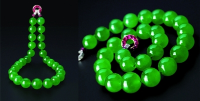 在4月7日结束的苏富比香港春拍“瑰丽珠宝及翡翠首饰”专场,来自传奇名媛芭芭拉·赫顿旧藏之天然翡翠珠项链经七名投标者历时20分钟激烈竞投后,以2.14亿港元天价成交,刷新翡翠首饰以及卡地亚首饰的世界拍卖纪录。这个天价神话引起了玉石收藏圈子的广泛关注,一些关于翡翠行情的消息也不胫而走。虽然翡翠在未来具有较大的升值空间,但是藏家在收藏翡翠时切忌盲目,并不是所有的翡翠都具有升值潜力。目前市面上需求最旺的,零售价为1000到5000元的翡翠制品多为流通饰品,只能消费而不具备投资价值。真正有投资价值的是那些收藏级翡翠制品。比如此串翡翠珠项链,其上27颗翡翠珠子颗颗正绿硕大,直径为15.40毫米至19.20毫米,洋溢着皇家气派,乃清宫遗物,世间罕见。流传有序,曾经拥有过它的人都是世界名流也是其天价的原因之一。翡翠收藏爱好者需要明白的是,艺术品投资是一项长线投资,作为收藏者首先要懂得欣赏。如果只抱着投机的态度入市,那是一件很危险的事。