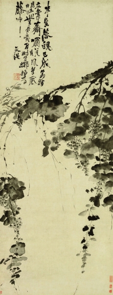 明代出现了一位精神状态与梵·高颇为神似的书画家徐渭。徐渭是明嘉靖、万历间人,出身官宦之家,年少时即负才名,然而生为庶子,幼年丧父,婚姻入赘,屡试不第,少年丧妻,一路行来,坎坷不断。后徐渭投入胡宗宪门下为幕僚,40岁方中举,但因严嵩倒台,胡宗宪在狱中自杀,其幕僚门人被追索。徐渭一度为之发狂,可能出现比较严重的幻听状态,屡次自刺其耳,还曾椎击头颅、肾脏,但多次自杀未死。更因精神问题变得疑神疑鬼,以为继妻不忠而以钝器击杀,因此入狱7年,逢新帝万历登基大赦方得出狱。徐渭一生的命运坎坷与精神偏执与梵·高异曲同工,但在中国绘画的传统语境中,艺术家抒发个性的武器往往不是色彩,而是水墨。墨是中国创造的最独特的黑色,由植物焚烧过后的黑色微尘胶合而成,水化之后可干枯,可湿润,可焦黑,可浓厚,可清淡,可变幻出朴素却包含无数可能的明暗色阶。徐渭的大写意花鸟,笔意纵横涂抹,墨气酣畅淋漓,不拘一格,充满强烈的艺术个性,与激情狂放的梵·高色彩相隔三百年时空,中西交相辉映。类似艺术的魅力,往往在当时孤独寂寞知音少,但却将历经时间的沉淀,超越时代而被后人真正认知。