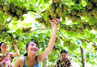 眉县南依秦岭,北跨渭河,气候温和、雨量适中、土层深厚肥沃,是猕猴桃的最佳优生区之一。眉县从1988年开始栽植发展猕猴桃。近年来,县委县政府大力落实惠农政策,推动全县猕猴桃产业迅猛发展,使之成为农民持续增收的骨干项目和核心产业。目前,全县猕猴桃种植面积已发展到28.6万亩,全县农民户均猕猴桃面积4 .1亩,人均1 .1亩。全县88%的农户从事猕猴桃产业。眉县猕猴桃种植面积及产量2012年分别占到全国的18%和29%。全县农民人均猕猴桃产业年收入达到8000多元,猕猴桃成为眉县农民增收的“金桃子”。