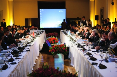 7月19日,首次中阿经济合作与协调战略对话会议在阿根廷首都布宜诺斯艾利斯举行。中国与阿根廷双方政府高级官员和有关企业代表共80余人出席会议,就两国宏观经济形势及政策、双边贸易投资和务实合作等议题进行深入探讨和交流。该对话机制由中国国家发改委和阿根廷外交部、经济部共同牵头,双方有关部门、金融机构和企业参与,旨在统筹规划和推动双边经济与投资合作。 新华社记者 荣浩 摄