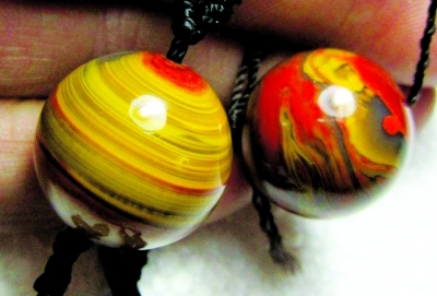 4.动丝:战国红多缠丝,且缠丝多样,战国红动丝料更是具有鲜艳颜色,观感奇特。因动丝料较少,更显珍贵。动丝结构有些极细,可大每毫米12支色丝,12支透明丝。