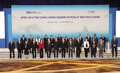 11月5日,2014年亚太经合组织(APEC)最后一次高官会在北京国家会议中心举行,拉开了今年APEC领导人会议周大幕。这是出席会议的高级官员合影。(相关报道见四版) 新华社记者 金立旺 摄
