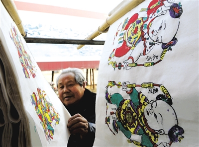 国家非物质文化遗产——河南省开封市朱仙镇木版年画是中国木版年画的鼻祖,是中国古老民间艺术精华,它源于唐,兴于宋,鼎盛于明清。明末清初,朱仙镇生产木版年画的作坊达300余家,年销量几千万张。春节临近,河南省开封市朱仙镇几十家木版年画作坊也正抓紧时间制作年画,供应节日市场。