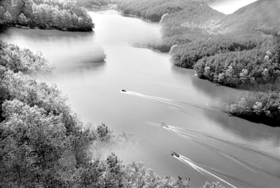 南湖 ▲南湖风景区是国家“AAA”级旅游区,陕西省十大自然生态旅游区,有七沟八梁、六十八座山头,这里“青山碧水,松涛竹海,鸟语花香”,有陕西第一湖的美誉。当游船快速行驶在宽阔的湖面上时,山影、云影、树影一齐在湖中荡漾。船后泛起层层浪花,引来许多鸟儿紧紧相随,鸣叫不已,使人兴趣盎然。 |