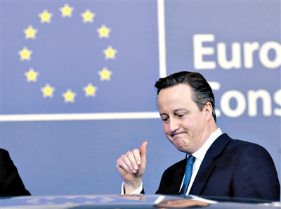 2月20日,在比利时首都布鲁塞尔,英国首相卡梅伦出席欧盟峰会后离开。经过30小时通宵达旦的“马拉松式”谈判,英国与欧盟19日晚在欧盟峰会期间就欧盟改革达成协议。欧洲理事会主席图斯克会后表示,欧盟成员国就改革方案达成一致。卡梅伦表示:“给予英国在欧盟‘特殊地位’的协议已经谈成,英国不会成为欧洲的‘超级国家’。”他同时透露,英国将于6月进行公投决定是