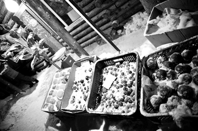 确保有铁锹、一桶沙子、防滑链,这些是必需的。雪乡唯一的一条主干道,大约也就500米,路上摆满了各种山货,东侧有雪乡景区管委会和客服中心,还有部分餐馆,街的尽头是一个Y字形分叉路,一头往长汀方向去,一头往仙境沟。
