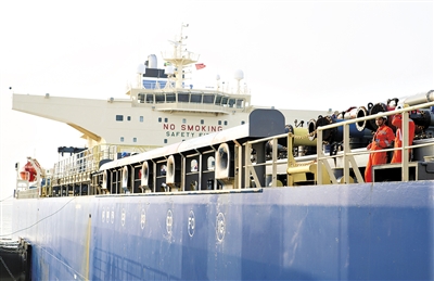 正式投入运营当天,在缅甸西海岸的马德岛港,耸立港口的四条巨大卸油臂中的两条分别降下,与运载14万吨原油的“苏伊士”型油轮的输油管口对接,油轮运载的原油开始向港口卸载,中缅原油管道工程宣告正式投入运行。
