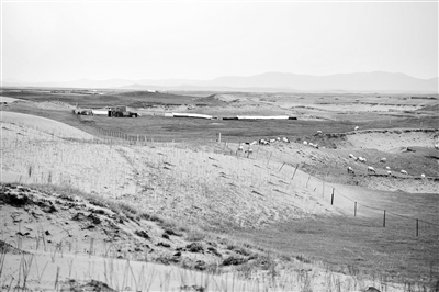 高原六月,南风劲吹。成片的沙丘之上,表层沙粒随风飘散、四处飞扬,肆虐着周围逐年退化的草场、草原,疾风呼啸间,黄沙漫卷的苍茫与苍凉纤毫毕现。
