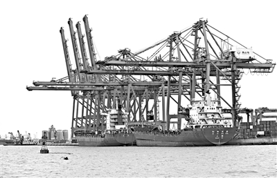 1月9日,两艘轮船靠泊在唐山港京唐港区集装箱码头装货。