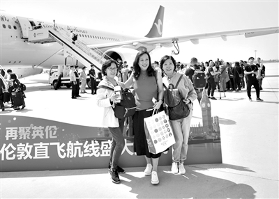 图为当日乘坐西安至伦敦直飞航班的乘客在登机前留影。新华社记者 邵瑞 摄