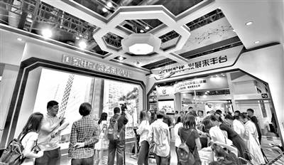 5月28日,第五届中国(北京)国际服务贸易交易会在北京开幕,吸引120个国家和地区办展办会参会。展会将围绕推动服务业和服务贸易“开放、创新、融合”发展这一主题主线,举办130余场论坛、会议和洽谈交易活动。图为观众在京交会上的北京丰台区电子商务展区参观。 新华社记者 李欣 摄