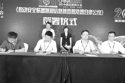 其三,签署移动漏洞自律公约。移动安全联盟倡议国内外相关厂商、检测机构共同签署《移动安全联盟漏洞信息披露和处置自律公约》,遵照“趋利避害、有效管理、积极引导”的基本方针,进一步规范国内外相关厂商、检测机构在漏洞信息发布和处置方面的行为,从维护国家、行业和用户利益的高度出发,积极加强自律,共同营造良好的网络安全环境。