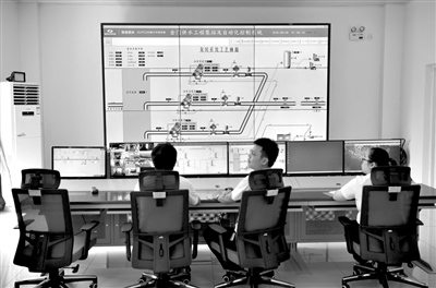 8月5日,工作人员在福建向金门供水工程晋江龙湖取水泵站中控室内监视设备运行情况。 当日上午,福建向金门供水工程实现正式通水。福建向金门供水工程由晋江龙湖取水泵站、陆地输水管道和跨海输水管道三部分组成,线路总长约28公里,设计流量3.4万立方米/日,工程总投资3.88亿元人民币,水费按9.86元新台币/立方米计价。