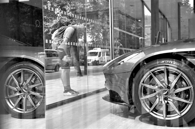 8月29日,在英国伦敦,一名男子在观赏阿斯顿·马丁展厅内的展车。 英国媒体报道,英国车企阿斯顿·马丁公司预计8月29日确认将在伦敦证券交易所上市的消息。英国广播公司(BBC)报道,阿斯顿·马丁将寻求出售的股份估值介于40亿英镑(51亿美元)至50亿英镑(64亿美元)之间。 新华社/法新