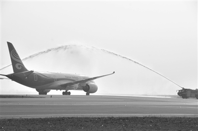 10月20日,海南航空控股股份有限公司一架波音787梦想客机抵达奥地利维也纳国际机场,标志着海南航空正式开通深圳直飞维也纳航线。新华社记者 刘向 摄