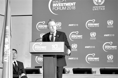 10月22日,在瑞士日内瓦万国宫,联合国日内瓦办事处总干事穆勒在由联合国贸易和发展会议(贸发会议)主办的2018世界投资论坛上致辞。 2018世界投资论坛22日在日内瓦开幕。多位联合国官员在论坛开幕式上强调,在全球投资环境面临不确定性挑战之际,应努力引导投资支持联合国可持续发展目标的实现。 新华社发(联合国贸易和发展会议供图)