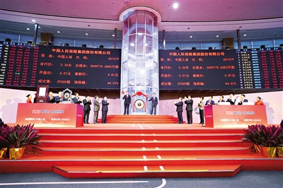 2018年11月16日上午9∶30,随着上海证券交易所鸣锣开市,中国人民保险集团股份有限公司(股票简称“中国人保”,股票代码:601319)正式登陆A股市场,成为国内第五家A+H股两地上市的金融保险企业,标志着中国人保自2012年港股上市以来,再次开启资本市场新征程。中国人保A股公开交易首日开盘4.01元,开盘后随即封住涨停,最新价为4.81元,涨幅达到44.01%。