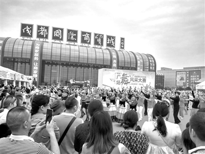 在地方政府的积极促进下,成都国际商贸城还获批国家级市场采购贸易方式试点,商家可以更便利地从事进出口贸易。目前国际商贸城日均人流量达10万人次,2017年交易额约300亿元。商贸城商家、四川省装饰协会会长高智君说,蓉欧快铁联接国外23个城市、货运量高速增长,昆明到老挝铁路也在建设,相信与欧洲、南亚、东南亚会有更多的商贸往来。