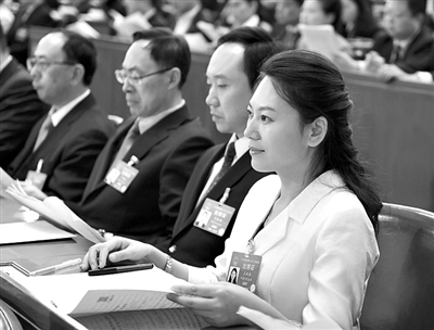 3月8日,王欣会(右一)在十三届全国人大二次会议第二次全体会议上。