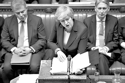 3月13日,在英国伦敦,英国首相特雷莎·梅在议会下院发表讲话。 英国议会下院13日投票决定,反对英国在任何情况下“无协议脱欧”。 新华社/路透