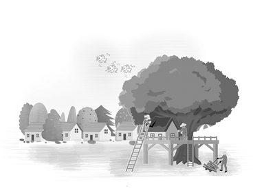 《经济参考报》记者走访看到,南山多家网红民宿均不同程度存在圈占林地违建现象,有的民宿在林中搭建了木屋、亭台、茶座、会议室;有的民宿扩建了泳池、瞭望台等设施,在树上建了树屋,将周边林地圈为自家院落。